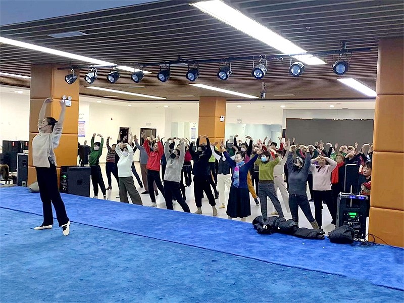 近日,县文化馆组织社区文艺分会业务骨干开展广场舞培训活动。老师从广场舞的表情、形体、动作等方面讲解每一个环节要领,示范舞蹈的分解及连续动作,指导、纠正学员的不规范动作,提升大家跳广场舞的基本技巧和表演水平。(刘文 陆红霞 摄)