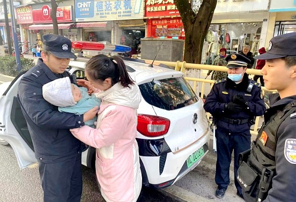 近日,县城管执法局执法队员在巡逻时发现一萌娃走失。随后,在执法队员、市民、民警的帮助下,经过身份确认后,孩子重新回到家人的身边。(徐慰 摄)