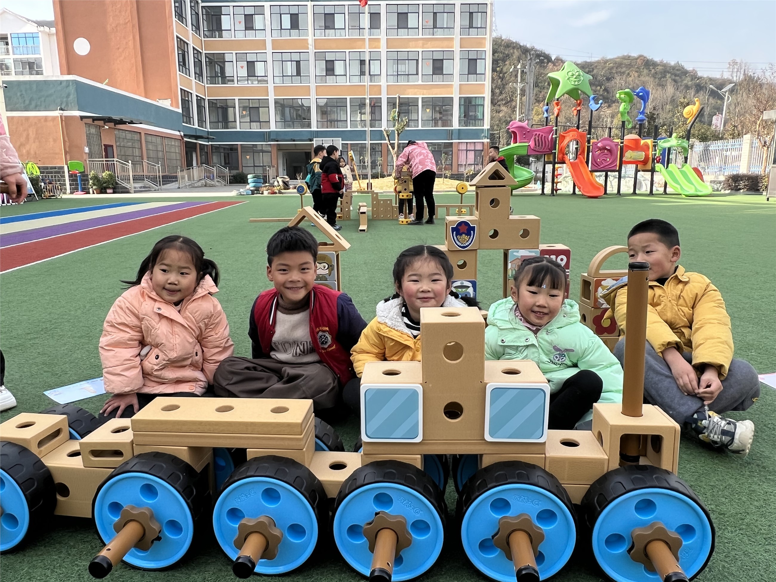 近日,大木厂镇中心幼儿园开展建构游戏活动。老师带领孩子运用各种材料完成“动物园、停车场、十字路口、火车站”四个场景的作品,使他们在参与中,体验建构游戏带来的乐趣,从而培养幼儿的思维能力与动手能力。(罗欢 丁章琨 摄)