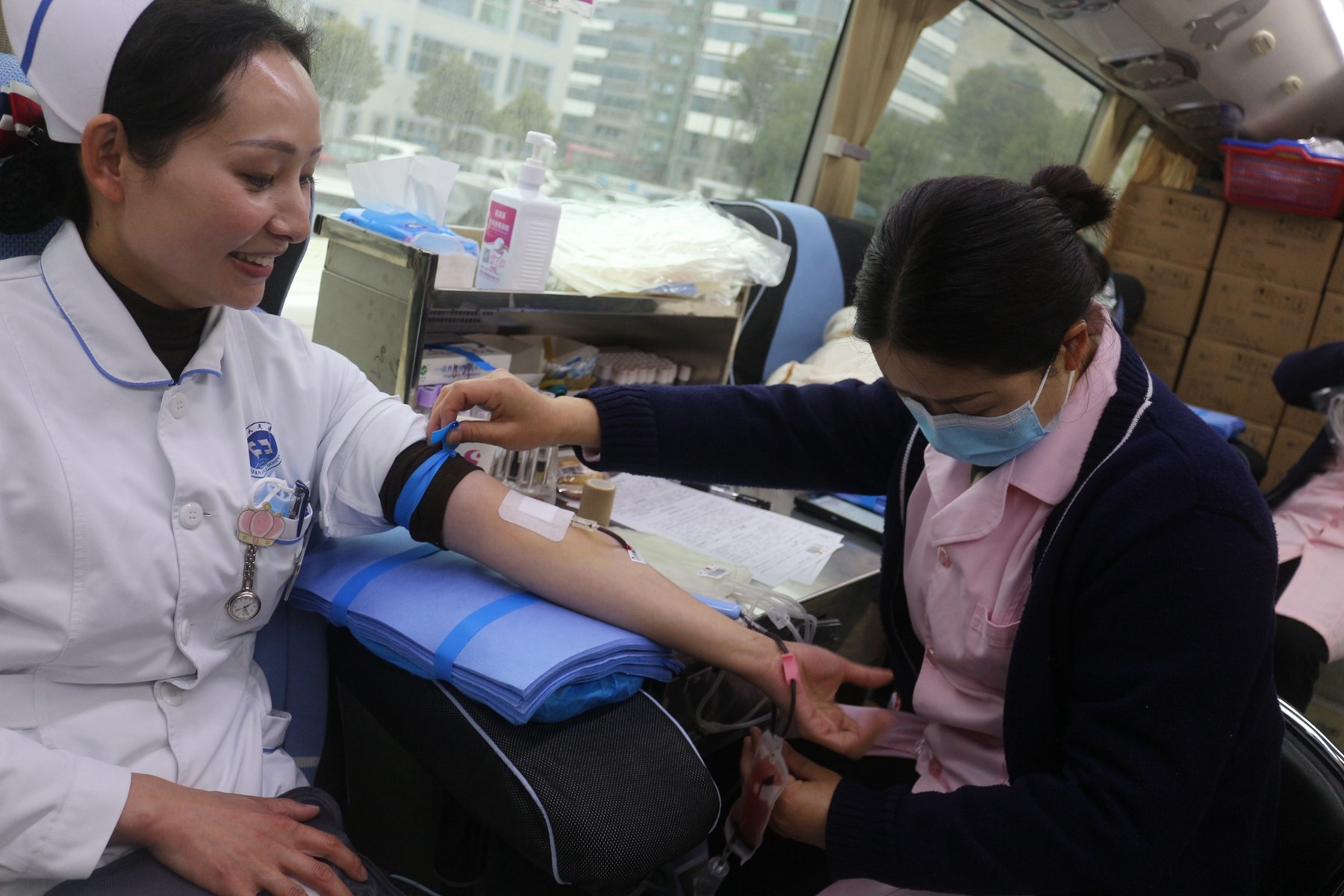 县人民医院组织医护人员无偿献血。(裴中东 屈振坤 摄)