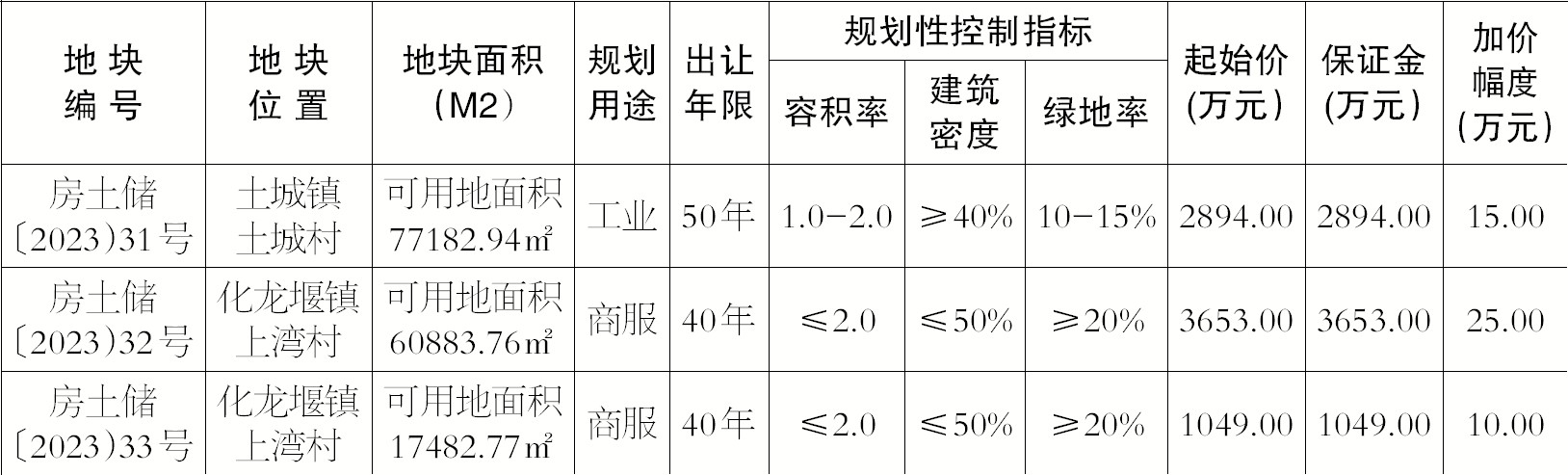 2、本次出让的宗地以现状条件出让,房土储(2023)31号宗地由土城镇人民政府负责交地;房土储(2023)32号、33号宗地由化龙堰镇人民政府负责交地。