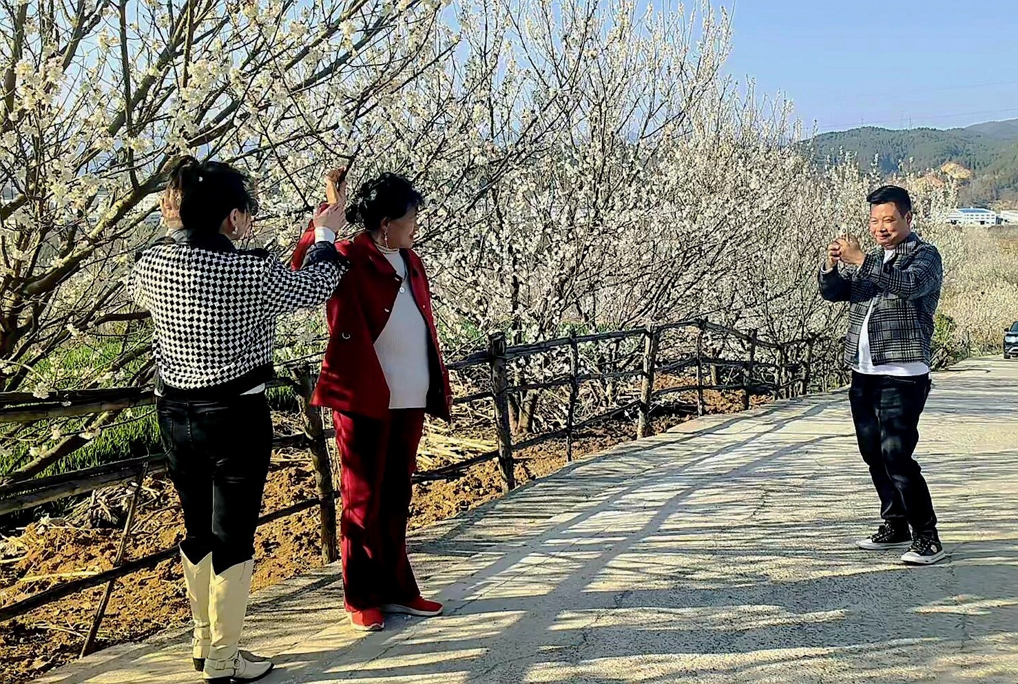 绽放的樱桃花、优美的生态,吸引着周边市民前来观赏,游客在融融春光里尽享樱花美景。大家兴致勃勃地踏青、拍照,沉醉在美丽的乡村景色里;还有不少市民现场拍视频、录抖音,与亲朋好友分享家乡的美景。“看到满山的樱桃花开得那么美丽,我的心情就非常激动,就迫不及待的想拍几张照片,来记录一下我的生活。”正在拍照的朱女士说道。
