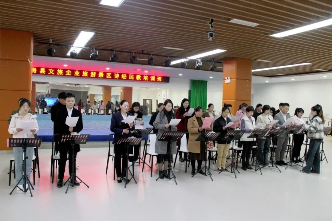 近日,各文旅企业代表在诗经民歌培训班上学唱诗经民歌。此次培训由县文旅局、县旅游协会联合举办,为期三天。旨在通过学习和传承诗经文化,提升文旅企业的服务质量和文化内涵,为游客提供丰富多彩的文化体验。(陆红霞 摄)