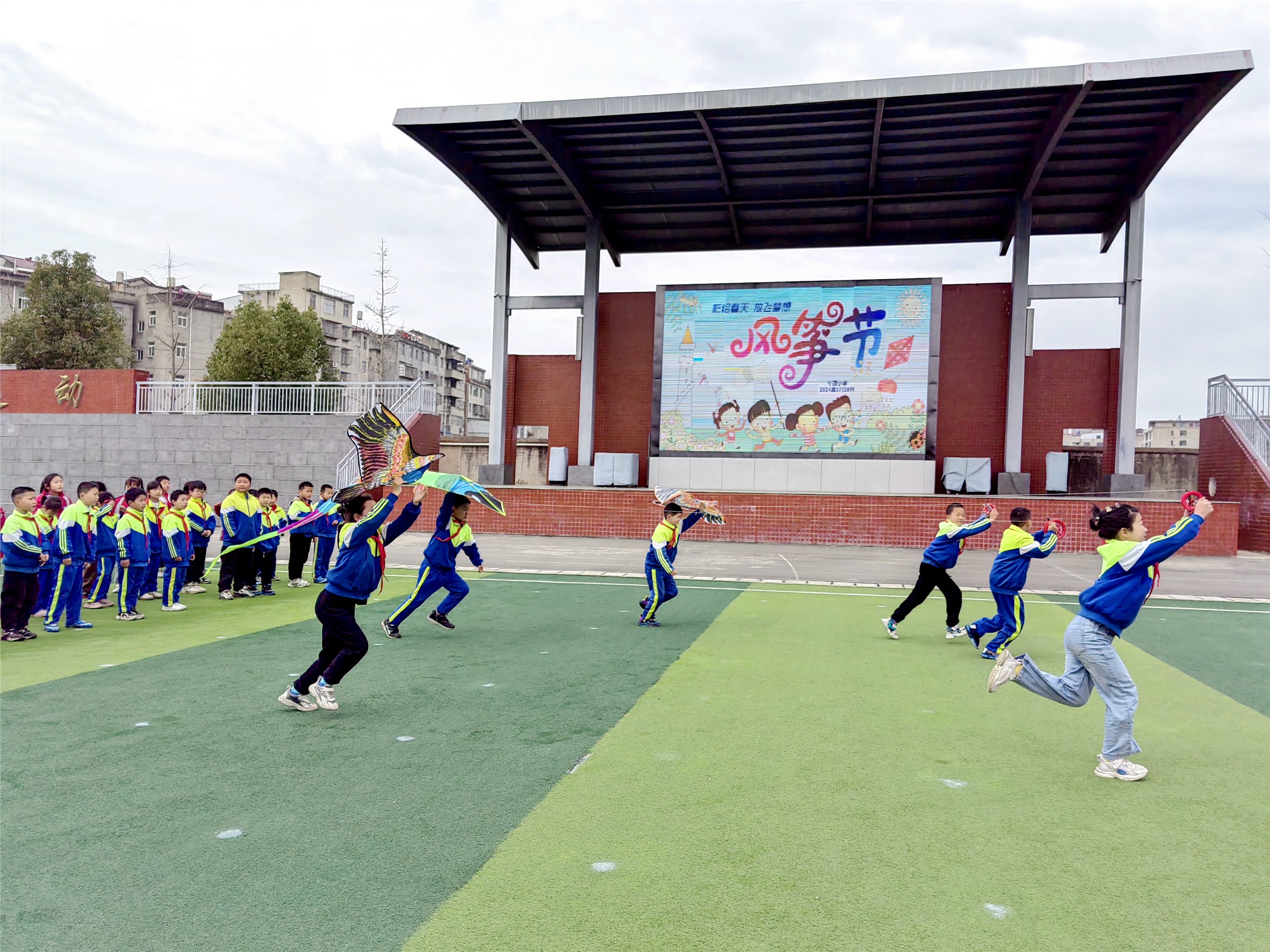 近日,军店镇军店小学的学生在课后服务时间开展放风筝趣味活动。今年以来,军店小学不断创新活动载体,开展丰富多彩的课外活动 ,增强课后延时服务的吸引力和有效性,助力学生健康成长、多元发展。(散静娇 姚钊 摄)