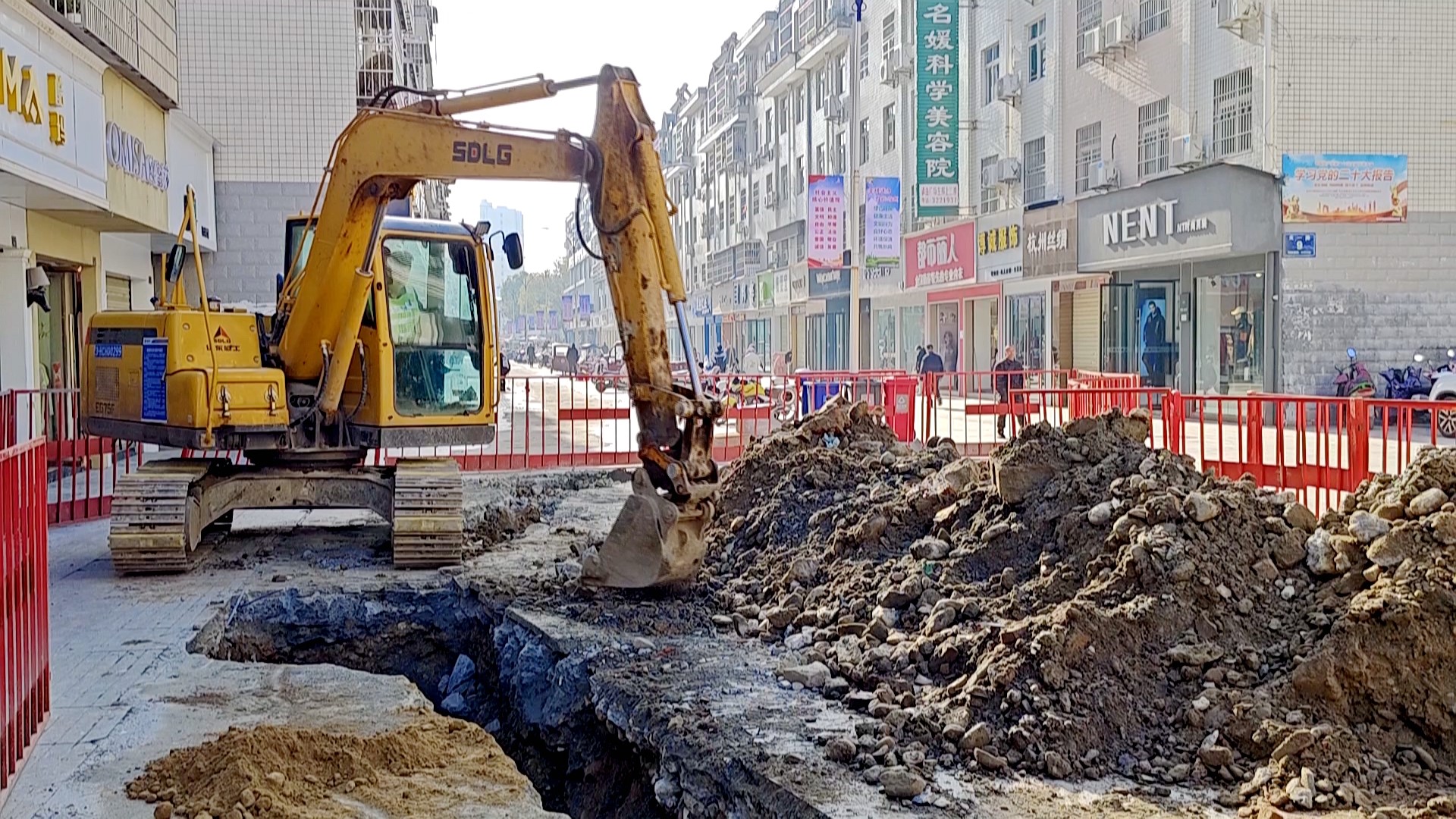近日,记者在城区西水路看到,挖掘机正在开挖路面,工人们在一边修整边坡、铺设排污管、砌筑检查井,西水路(天一路段)水环境治理项目中的入户管网铺设工作正在有序推进。(刘臣 摄)