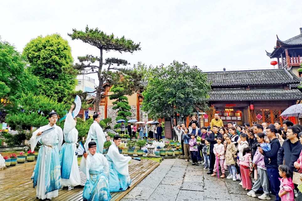 西关印象景区NPC沉浸式游园甜蜜“宠”客。(林加锋 摄)