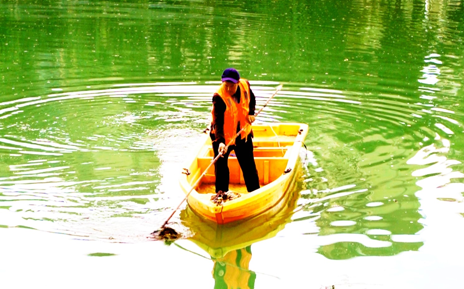 近日,县住建局市政园林绿化中心组织人员对城区河道内及河岸周边的生活垃圾、建筑垃圾、水面漂浮物等进行拉网式清理整治,对河道淤泥进行了疏浚清淤,全面改善河道水体环境。(何赛男 摄)