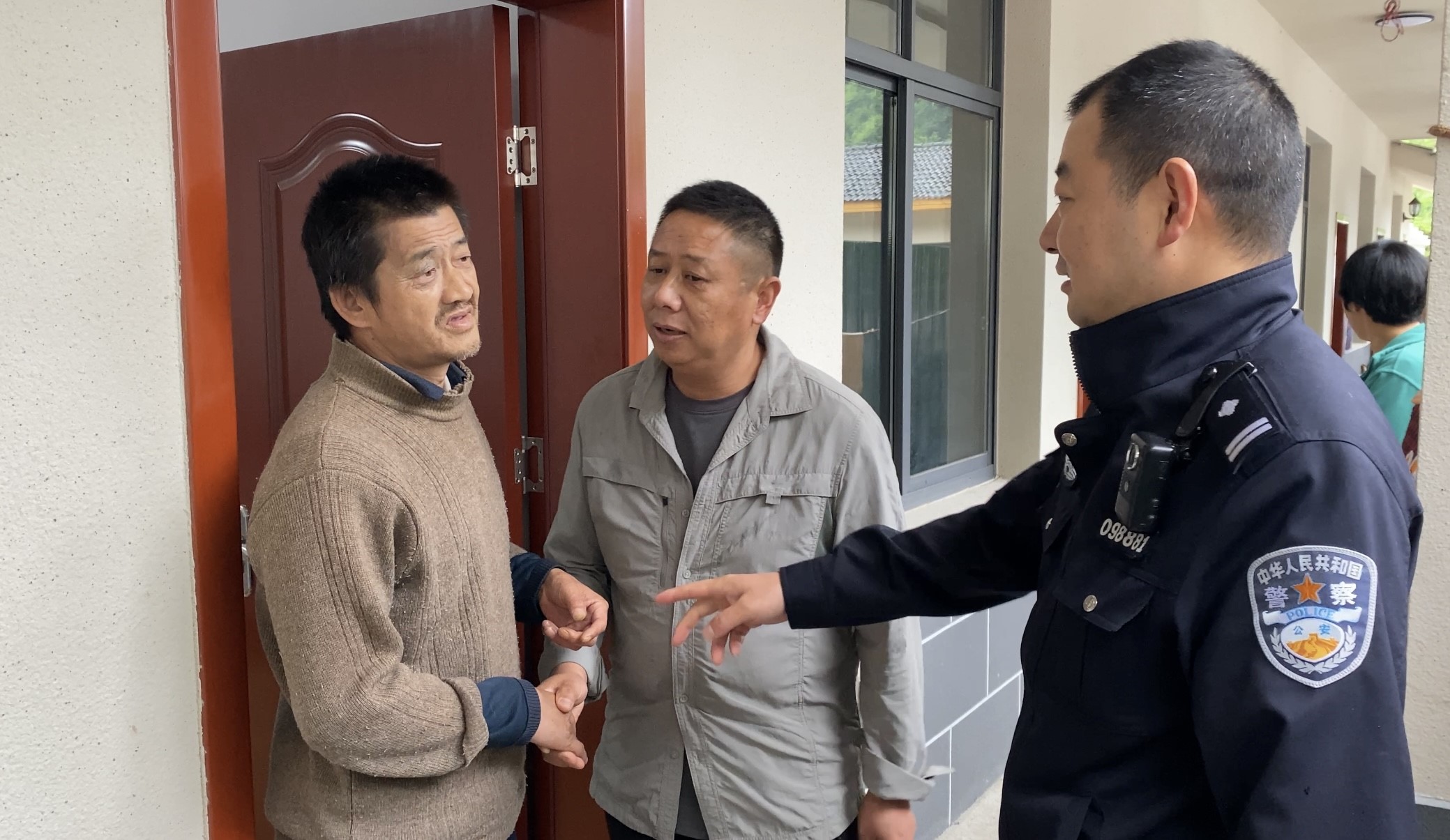 图为神农架林区公安局木鱼派出所副所长舒子东(右)与伍连斌(左)交流时情景