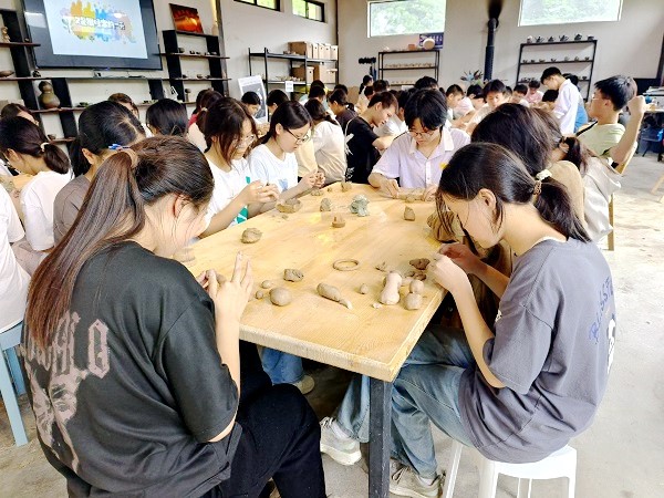 近日,县思源实验学校九年级学生在窑淮窑陶艺工作室体验手工泥塑。在该校开展的以“减压赋能·逐梦中考”为主题的研学实践活动中,学生通过参与采茶、班级风采展示活动等环节,减轻学生的备考压力,进一步丰富他们的课余文化生活。(罗兴超 摄)