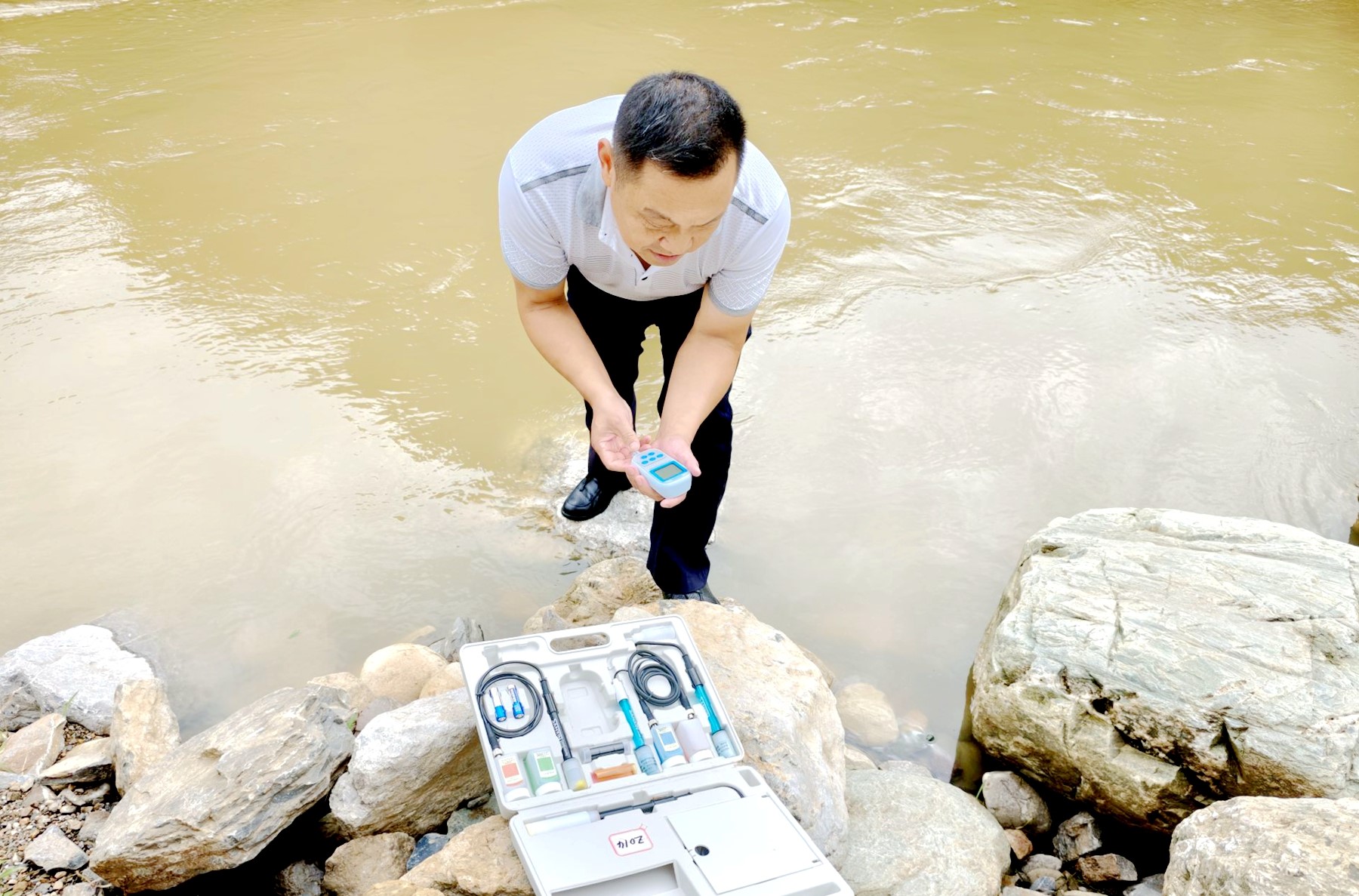 近日,县环境监测站技术人员深入马栏河(尹吉甫镇段)开展水质监测工作。近年来,市生态环境局房县分局强化工作举措,紧抓监管,结合在线监控及现场勘察,对水环境进行全水系铺开、全方位施治、全过程监管,为水质监测“把脉问诊”。(余红 程瑶 摄)