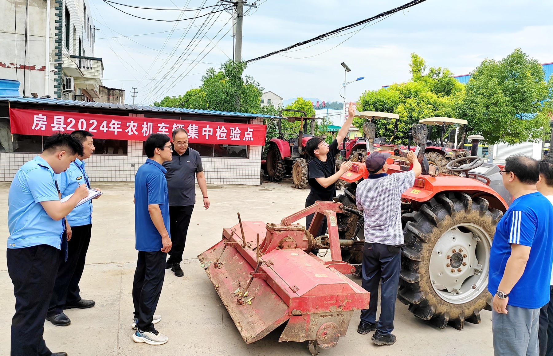 近日,县农机服务中心联合农业综合执法大队到各乡镇,对登记在册的农机车辆进行集中年检审验工作,工作人员还对农机购置、报废更新补贴政策进行宣传科普,提高机手安全生产意识。(周莹 摄)