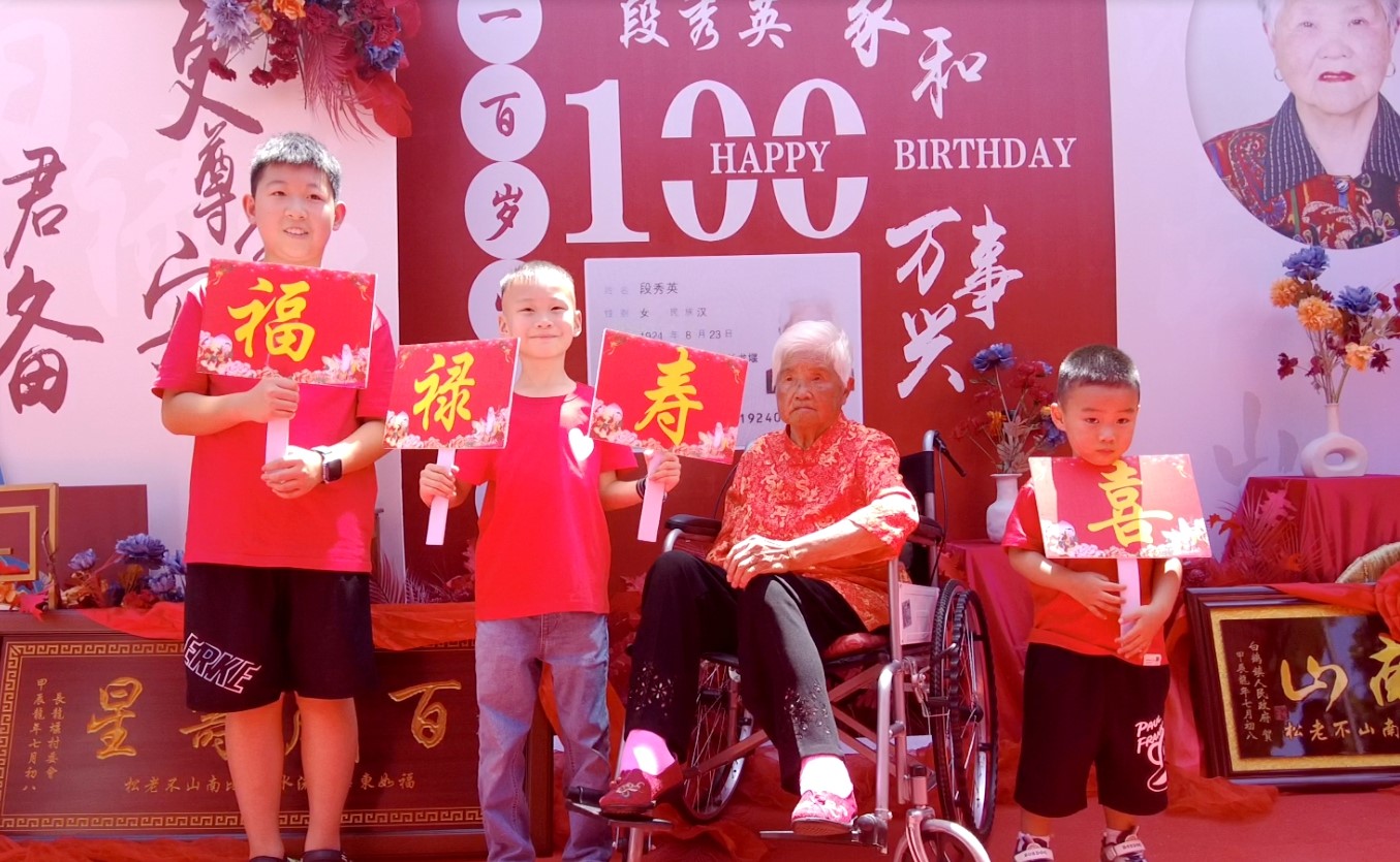 近日,白鹤镇长龙堰村段秀英老人迎来百岁寿辰,子孙四代欢聚一堂,晚辈们用各种方式为老人送上祝福。近年来,白鹤镇长龙堰村大力营造崇德行善、见贤思齐的良好氛围,引领村民向上向善。 (秦珊珊 摄)