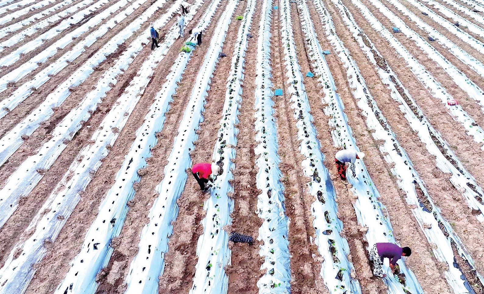 近日,在军店镇何家村蔬菜产业园里,村民正在移栽贝贝南瓜苗。近年来,我县按照“政府搭台+金融唱戏+市场主体带动”的模式,积极发展蔬菜、中药材、茶叶等地方特色产业,带动农民就近就业增收。