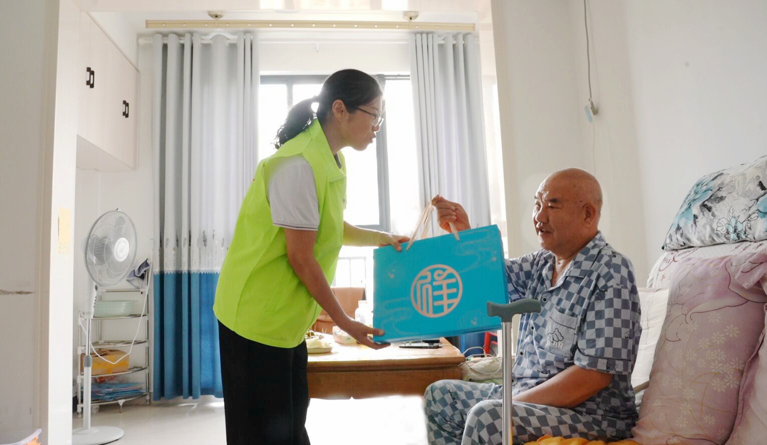 中秋节临近,志愿者为留守老人送上手工制作月饼。在风雅城市广场党建邻里中心,城关镇北关社区组织志愿者邀请社区老人制作月饼,开展心理健康、防诈骗知识讲座等活动,丰富社区老人的精神文化生活,共同缔造温情而有关爱的社区。(杨硕 刘鹏飞 摄)