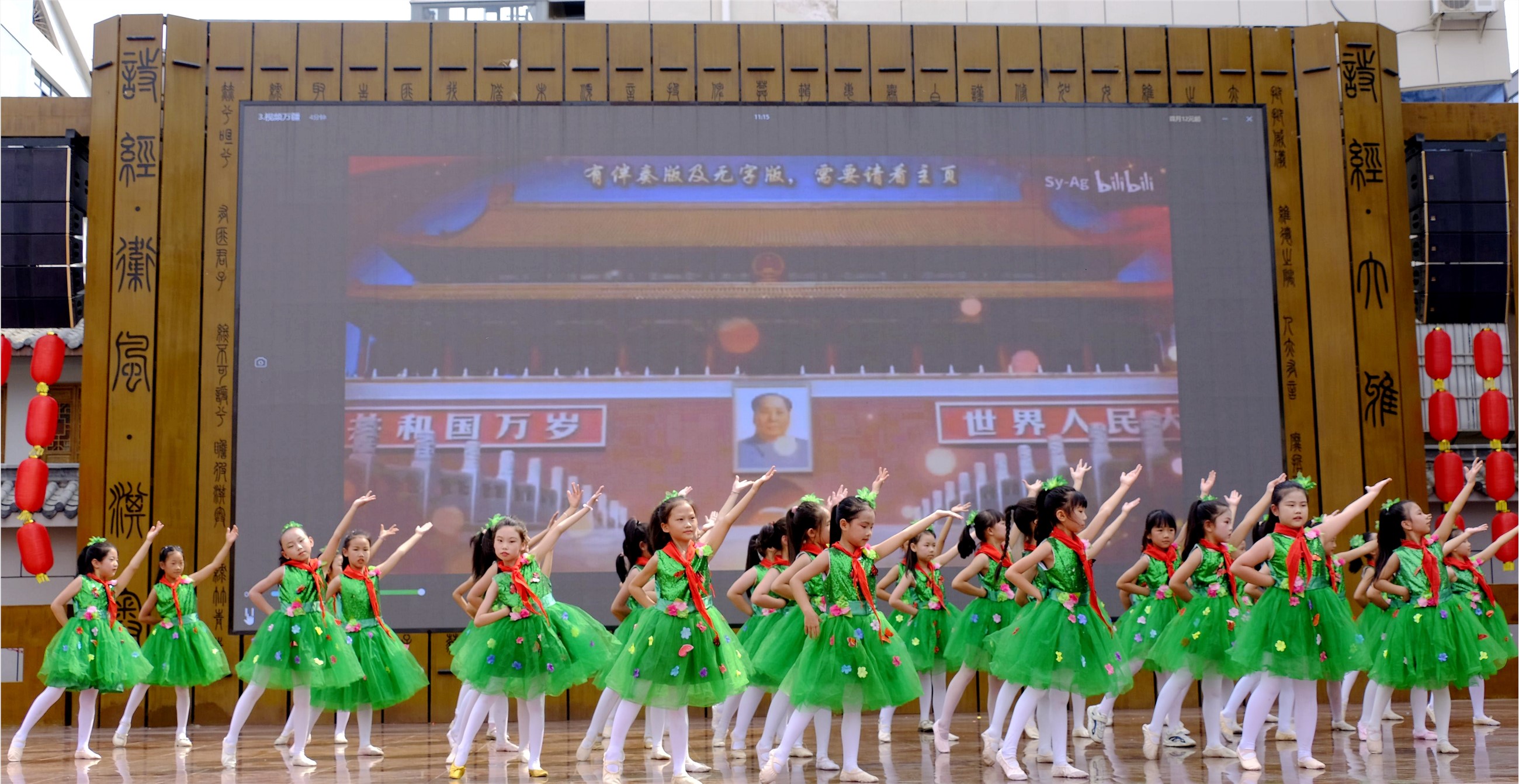 9月29日,县实验小学的学生正在表演手势舞。该校开展喜迎国庆系列活动,通过歌伴舞、课桌舞、红歌拉练、征文比赛、绘画比赛等,丰富学生的校园文化生活,激发他们的爱国之情。(黎娟 李文 摄)