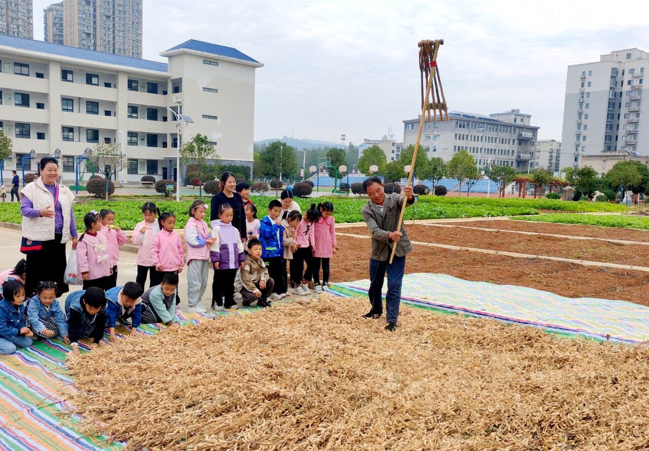 近日,县东城小学一年级留守学生在技能老师的指导下开展劳动实践活动。该校组建“爱心妈妈”团队,通过定期开展心理辅导、入户走访等活动,为留守儿童提供全方位的支持与帮助,让他们在爱与关怀中茁壮成长。(汪兴梅 摄)
