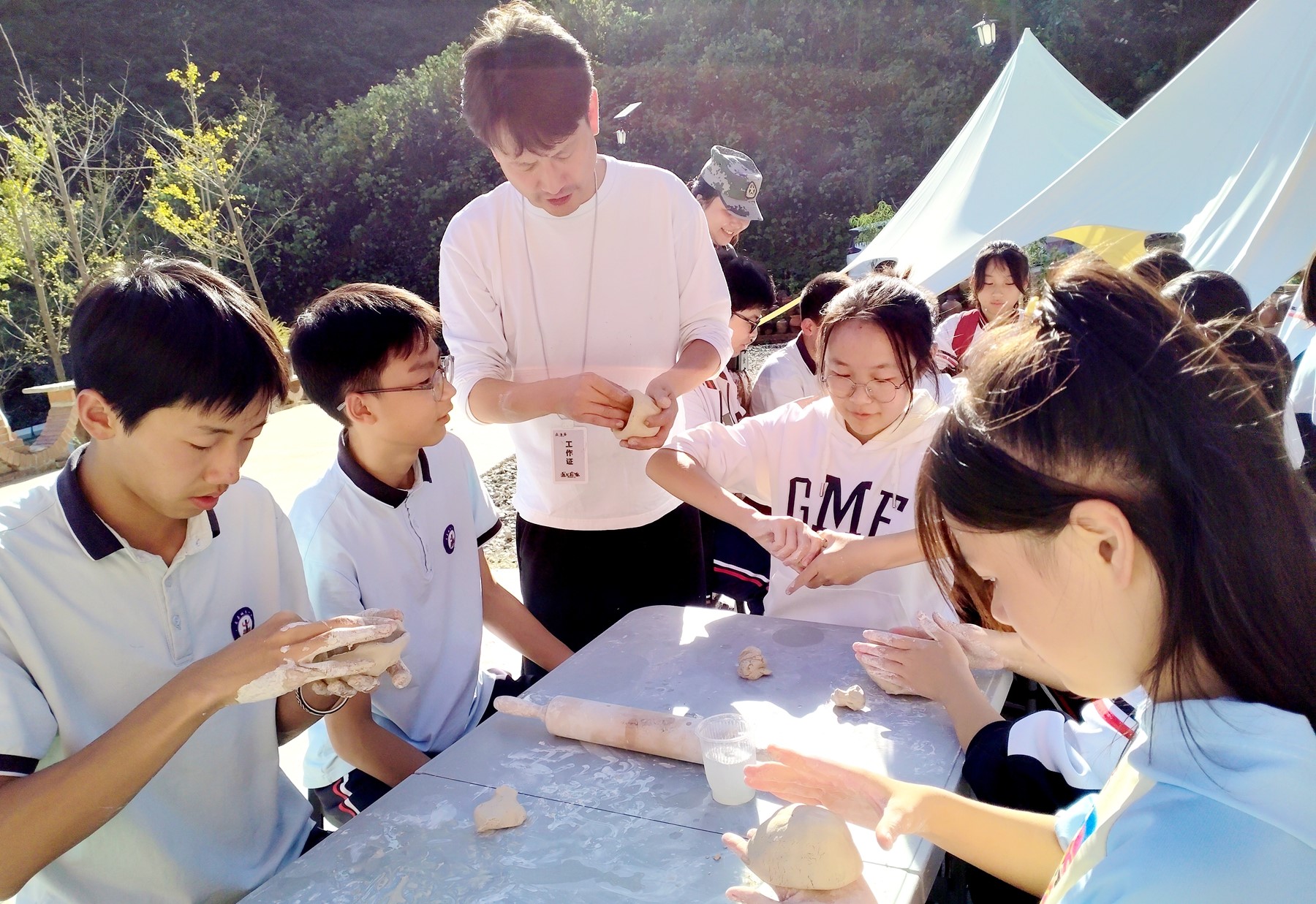 近日,在窑淮镇研学基地城关一中学生跟随陶艺老师学习拉坯操作。在研学基地学生们走栈道、爬茶山、赏秋茶,在“行走的课堂”中开拓视野,增长知识。