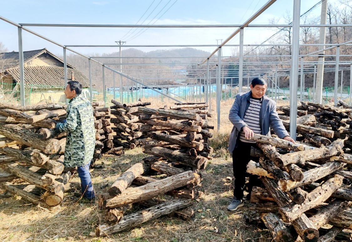 村民在自家庭院种植椴木木耳
