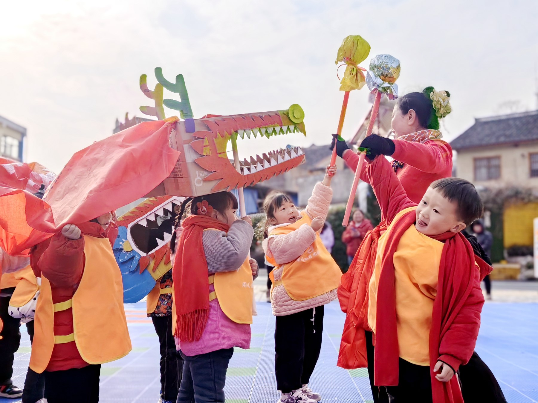 军店镇中心幼儿园的幼儿通过体验舞龙表演、划旱船、扭秧歌等,让幼儿用民间传统习俗和精彩文艺表演庆祝元旦佳节,表达对新年的期盼与祝福。