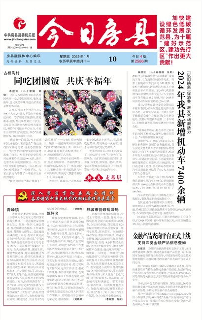 今日房县要闻 古桥沟村 同吃团圆饭  共庆幸福年 深入学习贯彻县两会精神 奋力谱写中国式现代化湖北实践房县篇章 2024年我县新增机动车7400余辆 金融产品查询平台正式上线