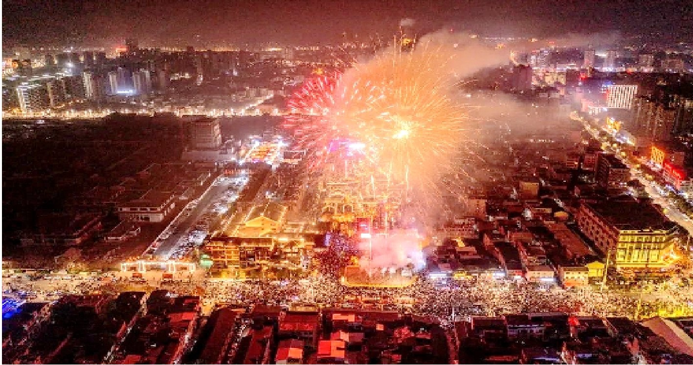 农历正月初五晚,数万名群众和游客在西关印象周南广场共赏烟花盛宴、共庆新春佳节。