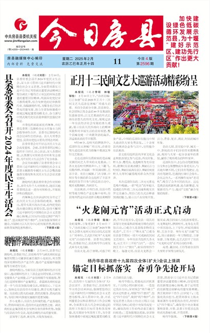 今日房县要闻 县委常委会召开2024年度民主生活会 谢晓鸣杨丹华与湖北南桂铝业集团有限公司座谈 正月十三民间文艺大巡游活动精彩纷呈 “火龙闹元宵”活动正式启动 锚定目标抓落实  奋勇争先抢开局