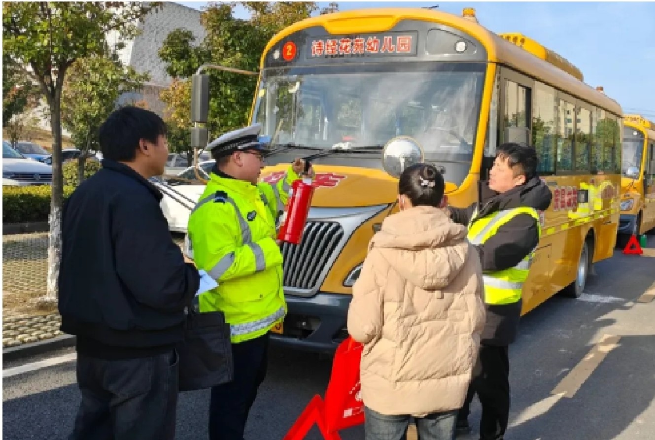 近日,县交警大队开展校车安全专项检查行动。民警对车辆的制动系统、轮胎磨损情况及车轮止退器、防滑链、安全锤等安全设备是否携带完好,灭火器、急救箱药物是否过期等情况进行检查,有效保障春季开学校车平安运行,切实保障学生人身安全。(夏凡 摄)