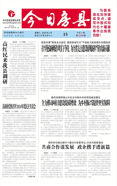今日房县要闻 高红民来我县调研 县政府党组召开2024年度民主生活会 扛牢使命锤炼作风实干争先  为全省支点建设展现新担当作出新贡献 全力推动项目建设提质增效  为乡村振兴提供坚实保障 共商合作谋发展  政企携手谱新篇