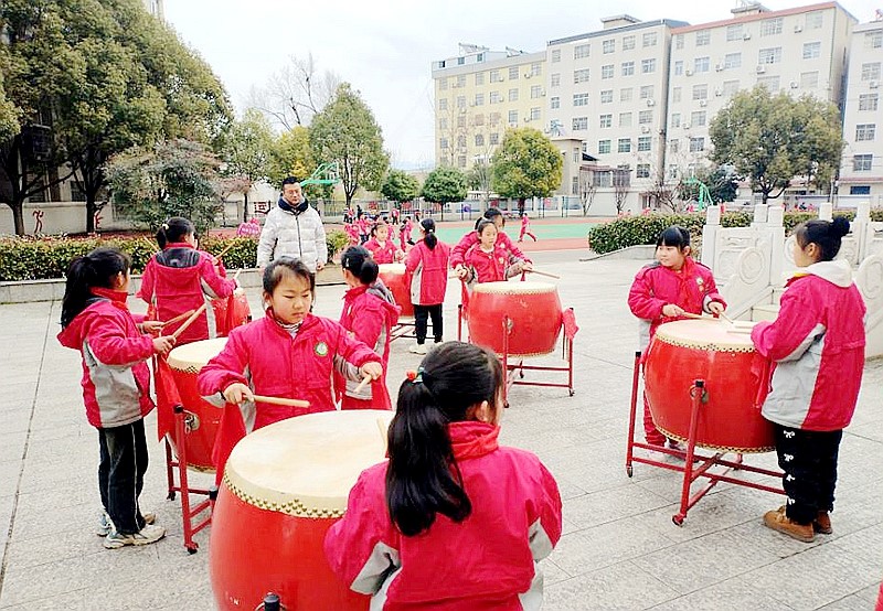 近日,花宝小学威风锣鼓社团的学生正在练习锣鼓表演。本学期,该学校持续深化课堂教学改革,不断丰富社团活动内容,创新活动形式,开设围棋、篮球、跳绳等社团,培养学生创新精神和实践能力,促进学生的个性发展。(李红军 王郑林 摄)