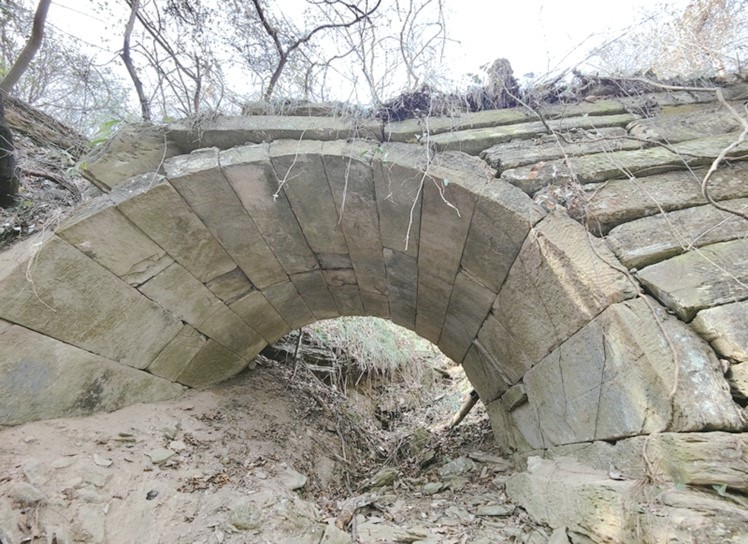 志公桥是一座隐匿于深山峻岭之中的单孔石拱桥,桥长约10米,宽约3米,高约2.5米,静静横跨在山涧(干沟)之上。桥身由人工精心雕琢的青石一块块垒砌而成,显得古朴而坚实。桥上青苔肆意生长,杂草丛生;桥下沟壑纵横交错,怪石林立。行走在桥上,仿佛每一步都踏入历史的长河中,扑面而来的古风,让人深切感受到那份穿越时空的宁静与祥和。