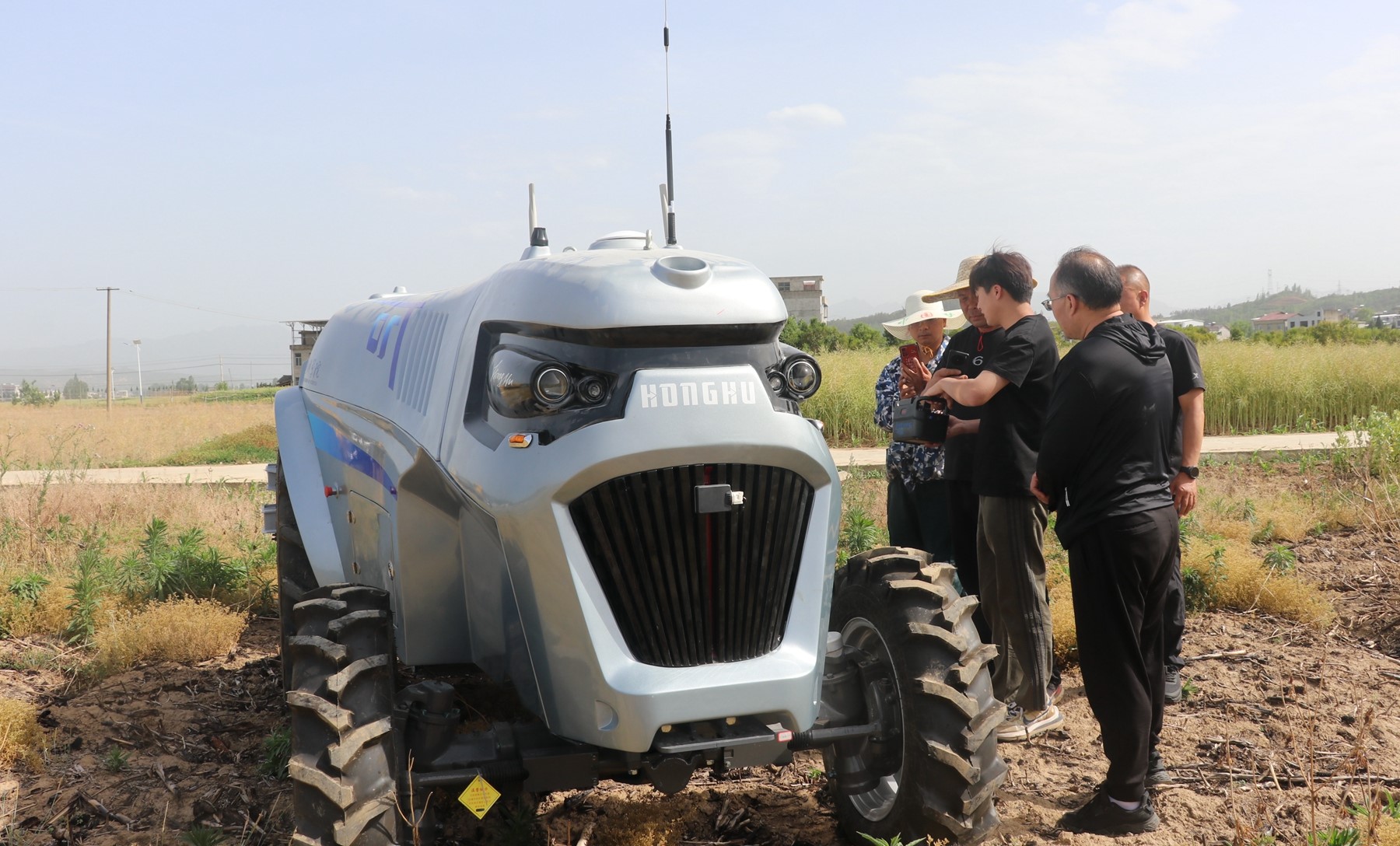 近日,在红塔镇况营村千亩糯稻种植基地,农机技术人员对合作社人员进行智能拖拉机操作培训,这标志着我县智能农机应用试点工作正式启动。县农机部门将大力推广无人驾驶拖拉机等智能农机,助力乡村产业振兴。(邢玉皎 摄)