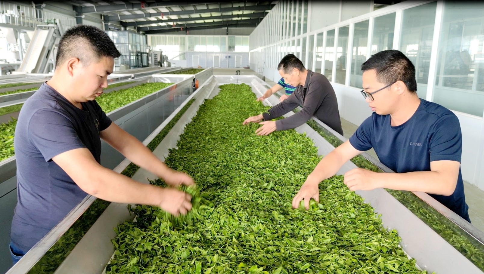 工人对新鲜茶叶进行萎凋,为后续红茶的品质奠定基础。