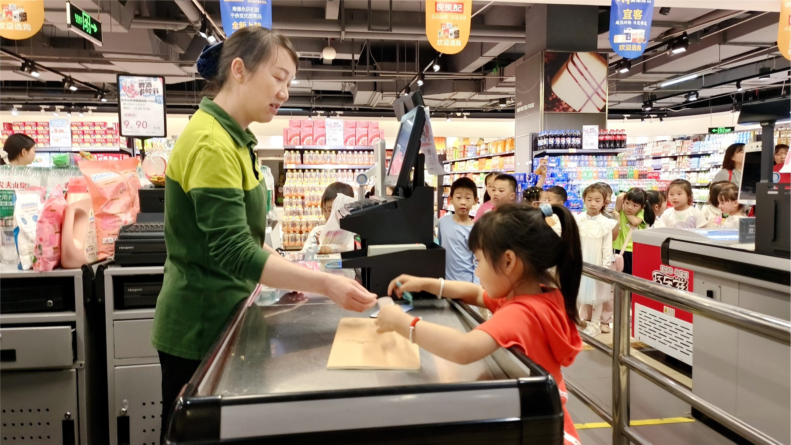 近日,县幼儿园组织幼儿到超市开展购物社会实践活动。通过对比不同商品的价格、计算购买商品的总额、在预算范围内挑选心仪的物品等,提升幼儿对数概念和运算能力的理解。(黄玉丽 赵金杰 摄)