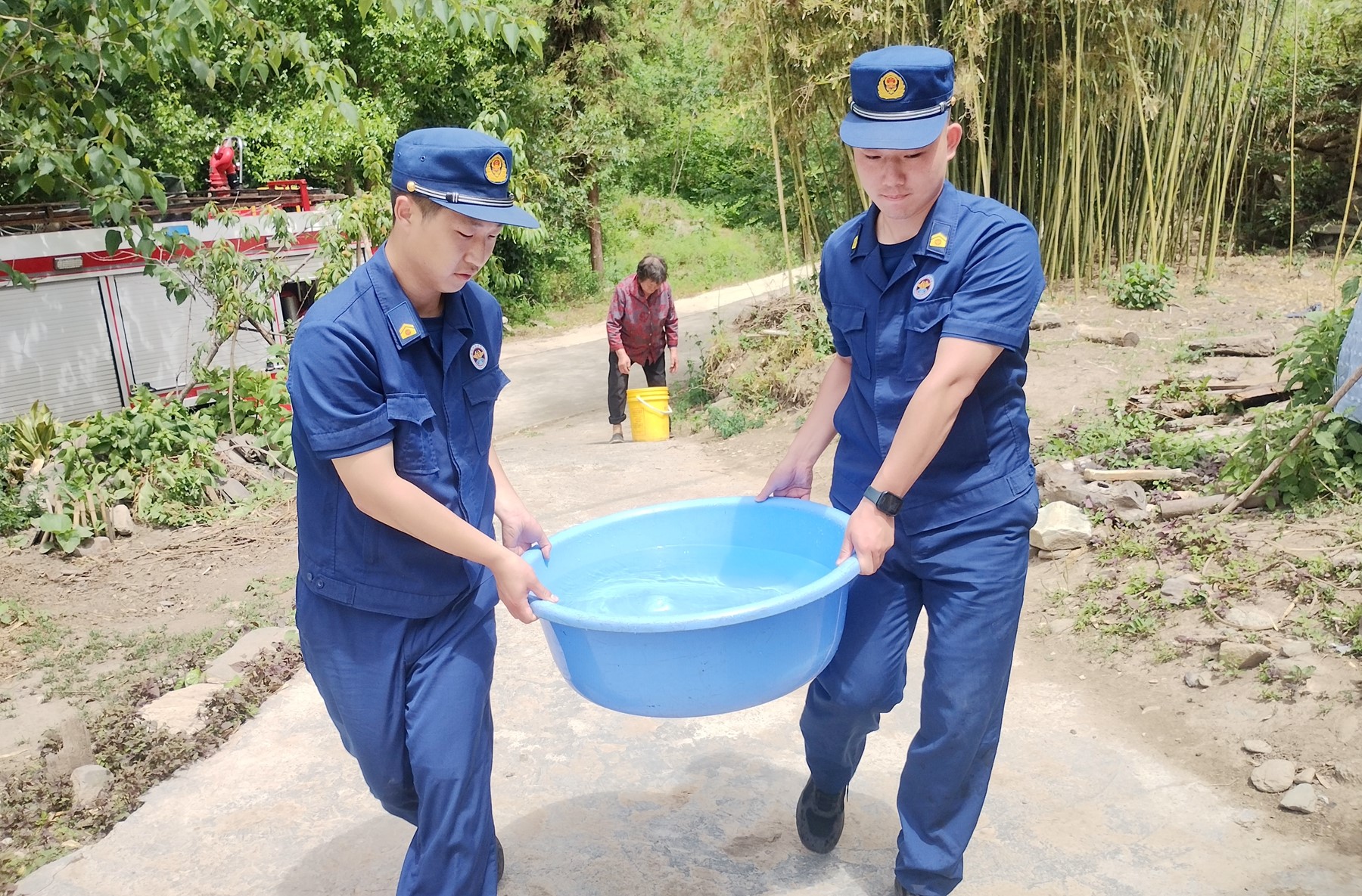 近日,县消防救援大队组织人员到红塔镇油坪村开展“送水上门”便民服务,协助村民接水、储水。消防人员还向村民普及节水常识和消防安全知识,进一步提升群众的防灾减灾意识。 (邓丽丽 摄)