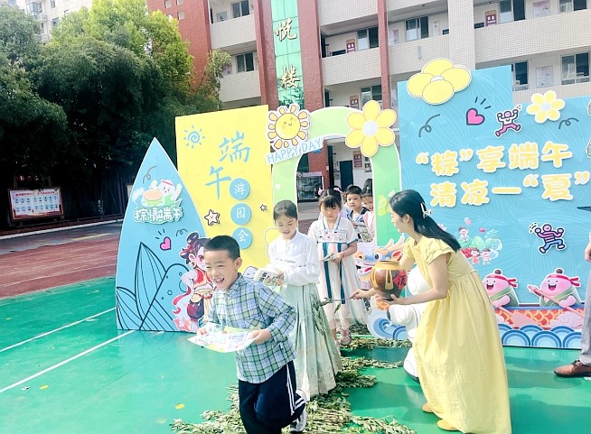 大木小学采用PPT、诗歌朗诵、知识抢答等形式,带领学生追溯端午节的由来、讲述屈原的故事、解析与端午节相关的文学作品等;学生互相交流熟知的吃粽子、赛龙舟、佩香囊等端午习俗,查找屈原生平事迹的课外实践作业,使学生了解端午节的文化内涵,加强学生对传统文化的理解与认知。