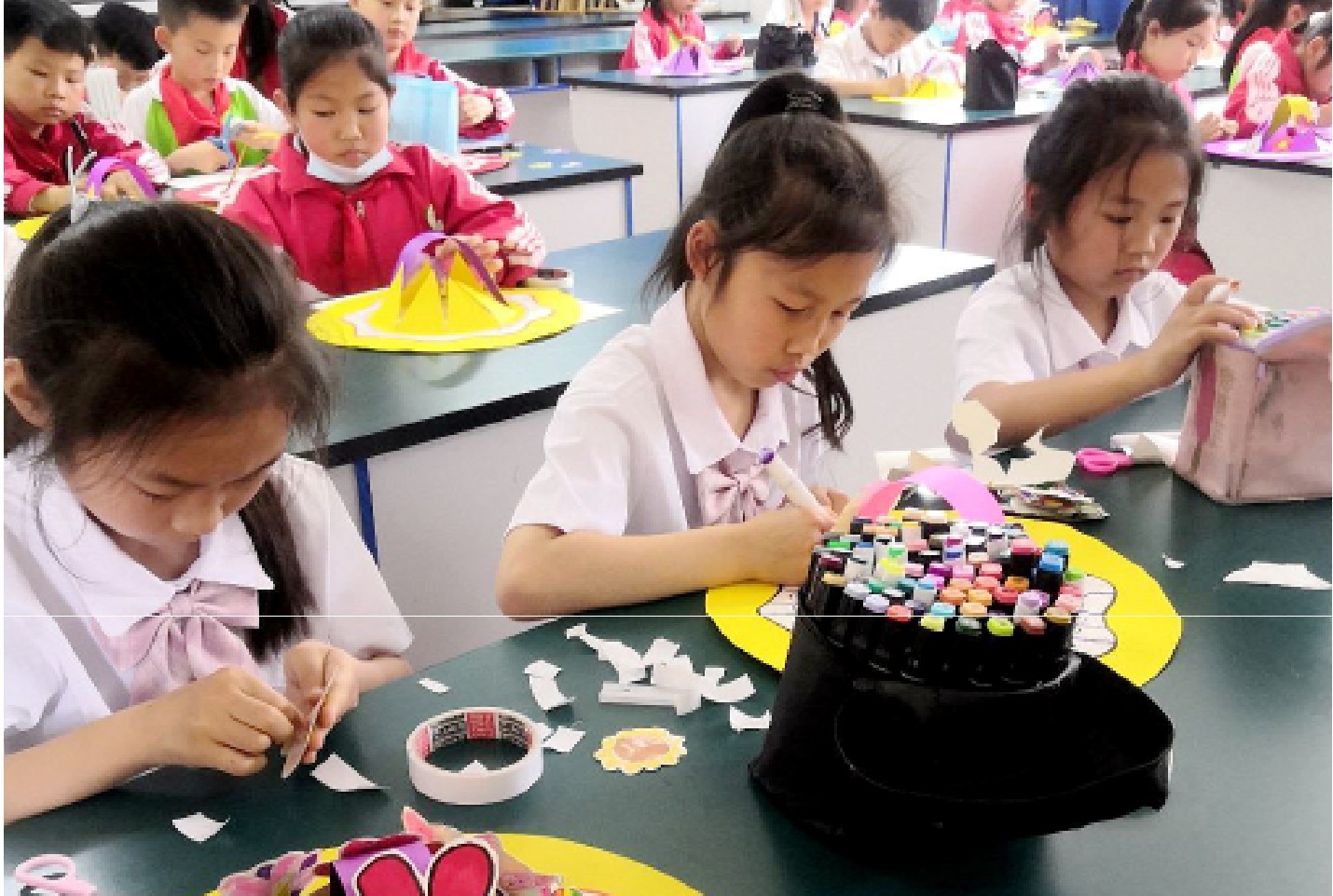 近日,县东城小学举办“巧手绘凉帽 劳动育新人”实践活动。学生运用丰富的色彩和独特的创意,将一幅幅生动的图案绘制在凉帽上,在手工制作中拓展思维,培养他们的创新精神和实践能力。(李英 摄)