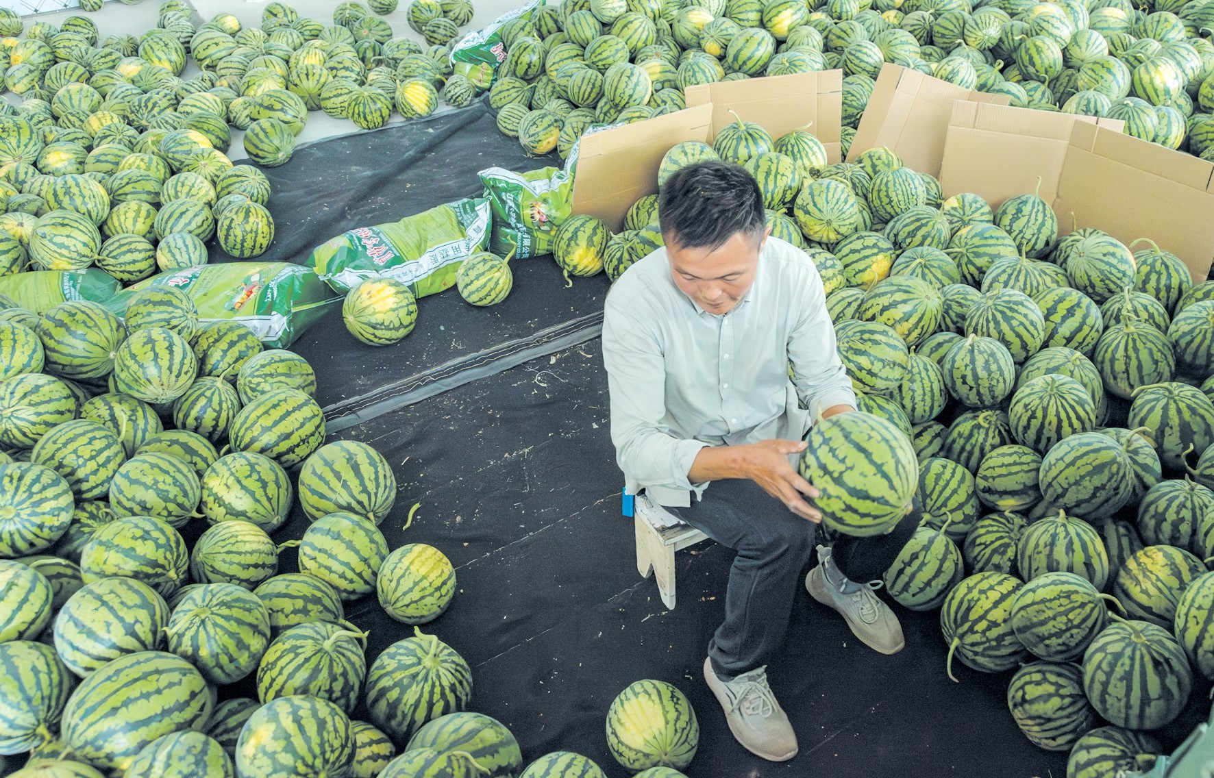 近日,在化龙堰镇上湾村果蔬基地,果农正在精心分选优质西瓜。农户们采用错峰种植技术,从5月到9月,不同品种的西瓜接连成熟上市,既满足市场需求,又提升瓜农收益。 (刘昆 摄)