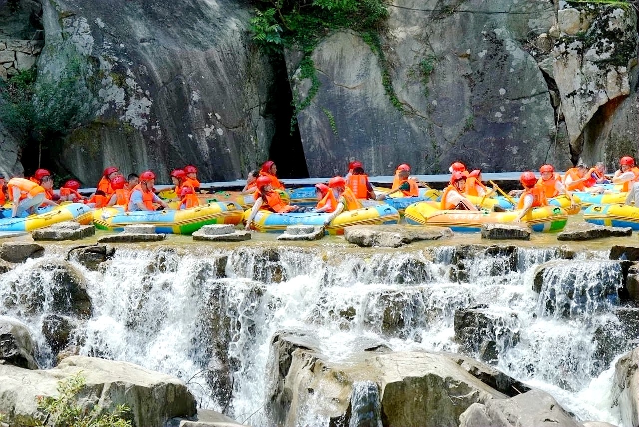 炎炎夏日,青峰大裂谷漂流景区内风景秀丽、游人如织,游客们在这里玩水嬉戏、避暑纳凉,享受着夏日的清凉与惬意。
