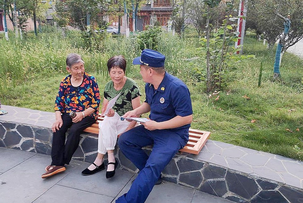 近日,县消防救援大队消防员向居民发放防溺水宣传手册,讲解防溺水知识,普及防溺水实用知识,提升群众安全防范意识,全面构筑防溺水安全防线。(邓丽丽 摄)