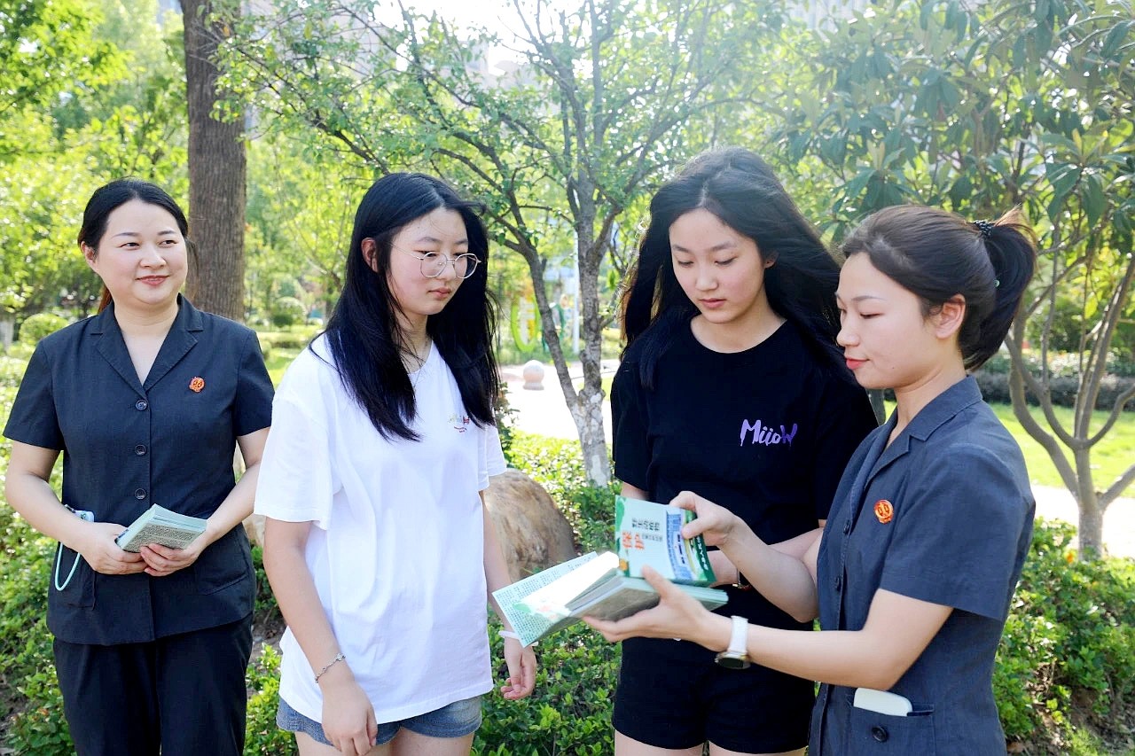 近日,县法院干警在半岛湾公园向市民发放环保普法宣传册。今年以来,该法院通过开展形式多样的环保普法宣传活动,引导市民树立尊重自然、保护自然的环保理念,自觉融入到保护环境的行动中来,践行低碳生活,争做环保卫士。(刘婷 刘睿 摄)
