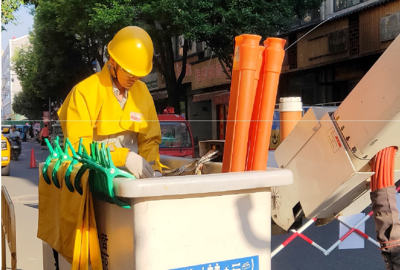 近日,国网房县供电公司作业人员正在进行城关镇泉水社区西街支线的带电接引流线作业。面对高温严峻“烤”验,该公司扛牢电力保供首要责任,统筹推进负荷调控、电网运维、应急保障等系列举措,提前开展主配网方式调整,均衡主变、线路负荷,全面响应电力用户的用电需求。(马雨薇 摄)
