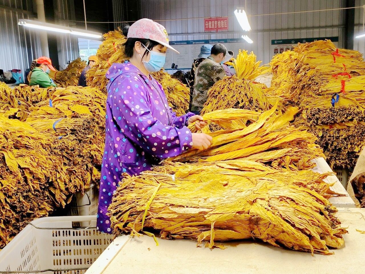 本报讯 (通讯员戴涛 周健婷) 近日,在白鹤镇各烟叶收购现场,成捆的烟叶堆满候烟区,烟农们陆续载烟前来,在工作人员引导下有序卸车、分级、质检、定级、过磅、入库,收购现场秩序井然。