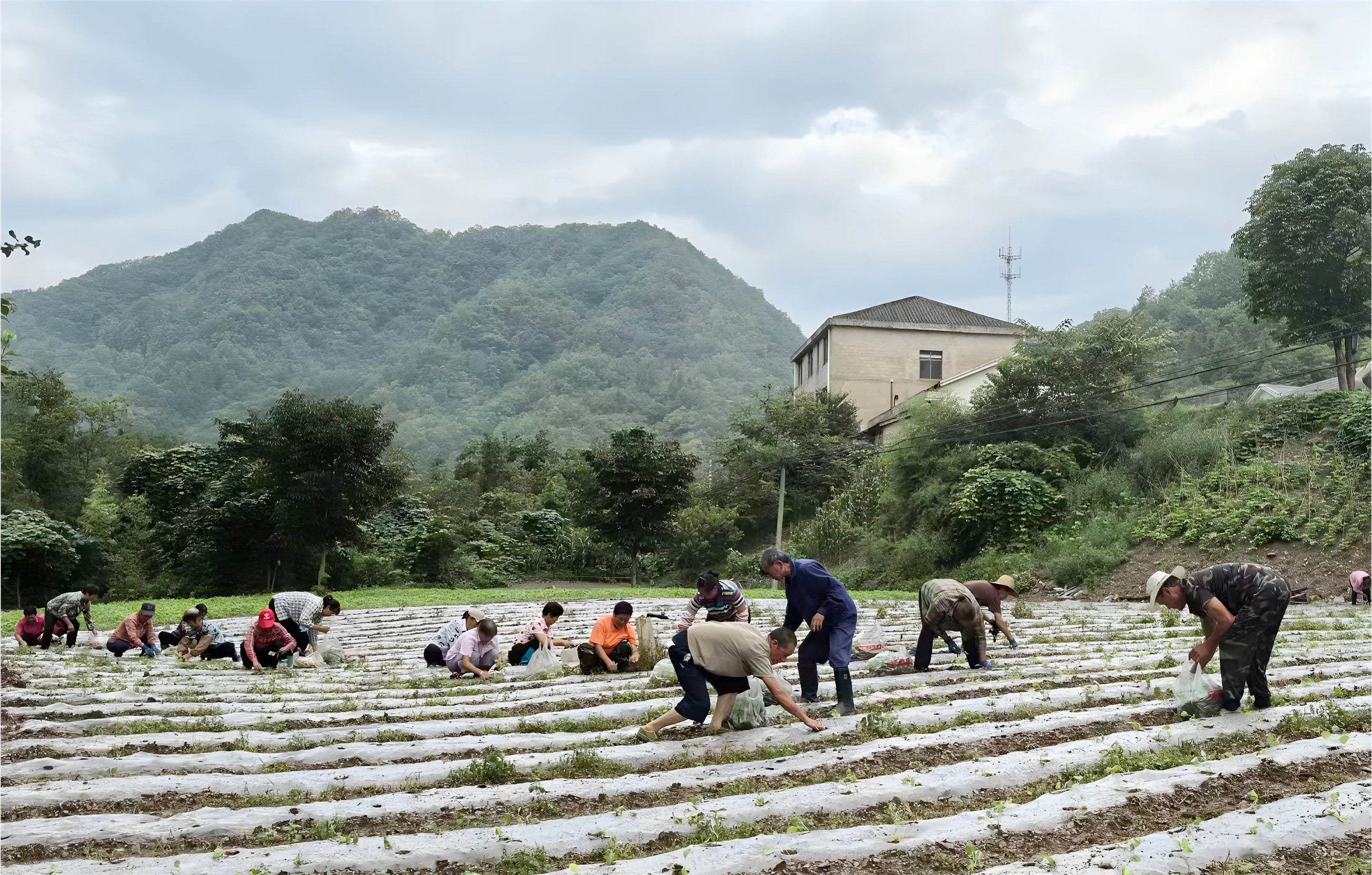 近日,在野人谷镇西蒿坪村蔬菜基地,村民正抢抓晴好天气翻土、移栽蔬菜苗。今年以来,该镇将东蒿坪、西蒿坪、千家坪等村小块地整合成2300亩连片基地,统一种植包菜、辣椒、白菜等,有效带动当地村民就近就业增收。 (万锦坤 摄)