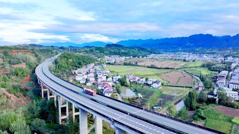 近年来,我县全力推进交通网络的完善与升级,破解农产品运输难、乡村旅游交通难“瓶颈”,助力乡村振兴、农民增收。图为谷竹高速化龙堰镇沿线农业特色产业基地。