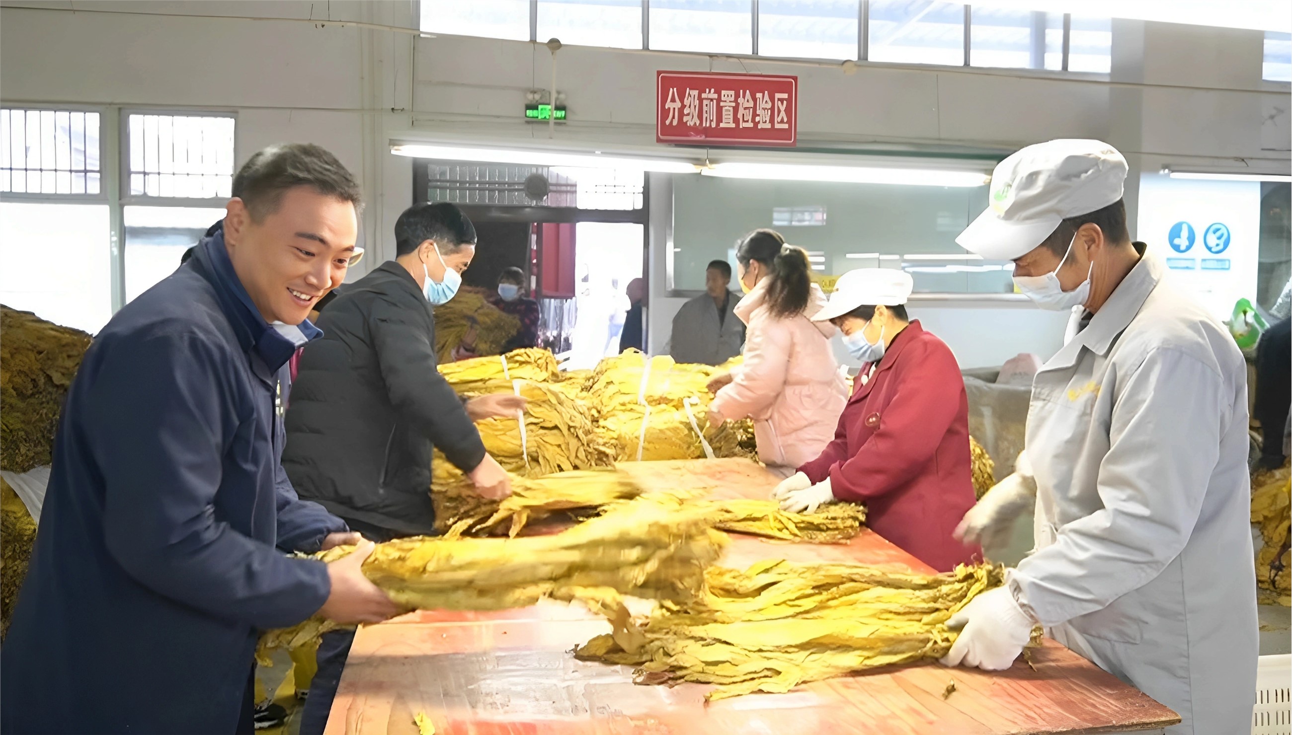 近日,在青峰烟站分级工场,专业分级员正忙着对烟叶进行分级。近年来,青峰镇通过“党支部+合作社+农户”模式发展烟叶产业,推动乡村振兴,促进农民增收。目前共收购烟叶1.93万担,产值3000万元,带动群众人均增收5000余元。
