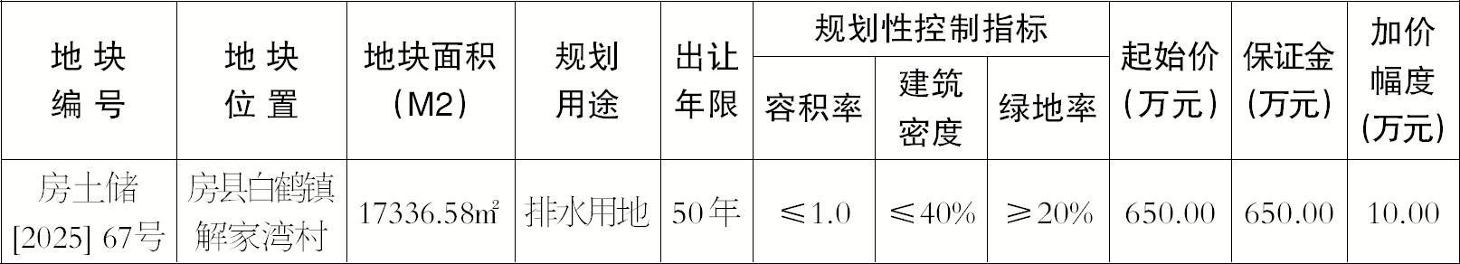 2、本次出让的宗地以现状条件出让,由房县自然资源和规划局负责交地。