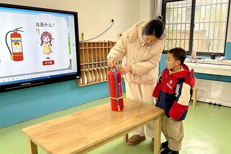 近日,城关镇八里幼儿园举行消防安全教育活动。通过视频、绘本故事、情景模拟等形式,让幼儿认识消防器材、逃生标志,了解灭火器的正确使用方法等,增强他们的安全意识和应急自救能力。