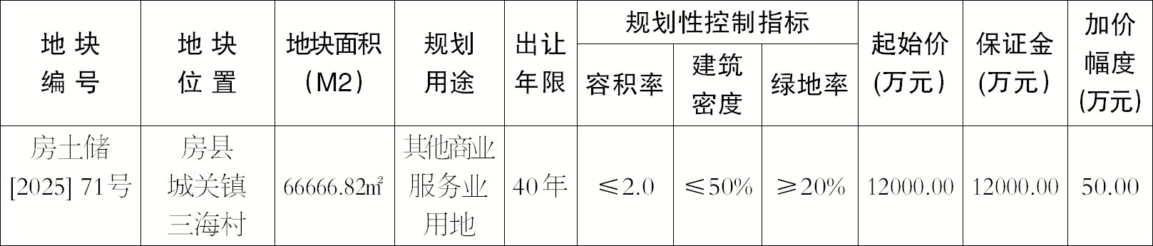 2、本次出让的宗地以现状条件出让,由房县自然资源和规划局负责交地。