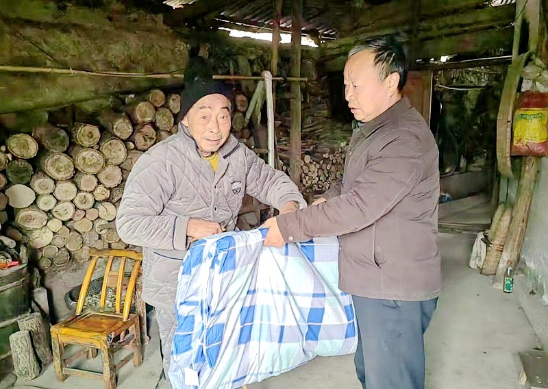 沙河乡对辖区内独居老人、留守儿童、残疾人等家庭进行上门走访,发放御寒物资。(车立章 摄)