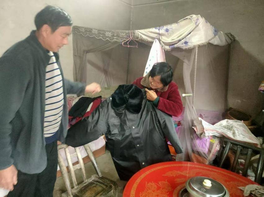 窑淮镇开展“敲门行动”,为有困难群众发放棉衣、棉被等。(张文凯 摄)